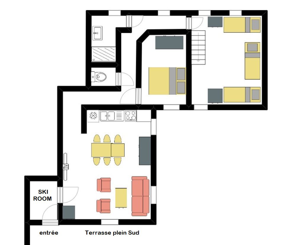 60m² au rez-de-chaussée, 5/6 personnes, 2 chambres, 1 douche , 1 toilette, terrasse, sèche chaussure, wifi gratuite… au coeur de la station village de La Plagne Montchavin à 10 m des pistes de ski et 150 m du centre aquatique.